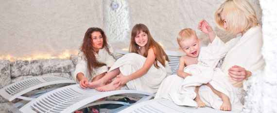 Специально оборудованное помещение, в котором эффект достигается благодаря сухому аэрозолю хлорида натрия в воздухе, который проникает в самую глубь дыхательных органов, очищая их.